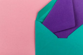 Kolorowe koperty papierowe na jasnym tle. Nowa poczta, napisz wiadomość. Wysyłaj i otrzymuj listy. Poczta. Pusta koperta, puste miejsce. Komunikacja, papierkowa robota. Zbliżenie koperty
