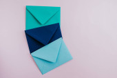 Kolorowe koperty papierowe na jasnym tle. Nowa poczta, napisz wiadomość. Wysyłaj i otrzymuj listy. Poczta. Pusta koperta, puste miejsce. Komunikacja, papierkowa robota. Zbliżenie koperty
