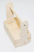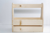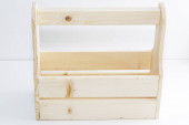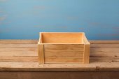 Puste drewniane pudełko. Wykonane z sosny, na jasnym białym tle.