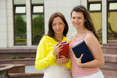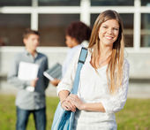 przyjaciele uśmiechający się razem na terenie kampusu Uniwersytetu