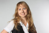 portret elegancki młoda kobieta w skoczek na ciemnym tle
