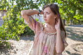 portret kobiety lato. kaukaski kobiece kobieta model poza.