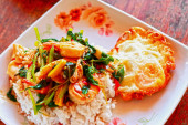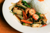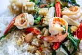 Zdjęcie "krewetki i bazylia smażony ryż." może być wykorzystywane do celów osobistych i komercyjnych zgodnie z warunkami zakupionej licencji Royalty-free. Obraz jest dostępny do pobrania w jakości wysokiej rozdzielczości do 5760x3840.