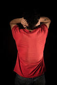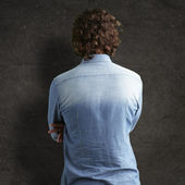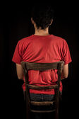młody mężczyzna siedzący na stare krzesło z rękami za głowę