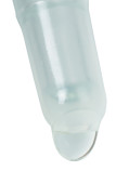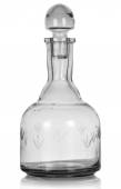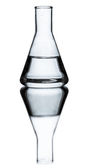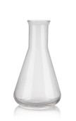 Kolba chemiczna z przezroczystym płynem izolowanym na białym.