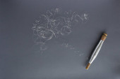 Słoiki z farbami gwasz i pędzlami na kolorowym tle plamy farby. Puszki plastikowe z kolorowym farbą do rysowania