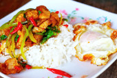 bazylia i wieprzowina smażony ryż.