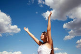 portret pięknej kobiety arabskiej oddech świeżego powietrza z podniesione ramiona