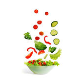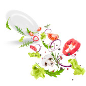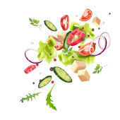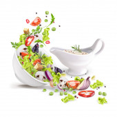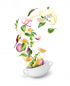 Zdjęcie "Świeża sałatka letnia z zieleniny i warzyw posypane w głębokim talerzu. Latająca sałatka przepis. Wektor 3d realistyczna ilustracja izolowana na białym tle." może być wykorzystywane do celów osobistych i komercyjnych zgodnie z warunkami zakupionej licencji Royalty-free. Obraz jest dostępny do pobrania w jakości wysokiej rozdzielczości do 5760x3840.