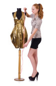 Młoda kobieta w czerwonym stroju Mikołaja na białym
