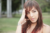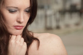 Kobieta dotykająca głowy