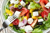 Świeża sałatka grecka z serem feta i warzywami. Najlepsze jedzenie do diety i odchudzania
