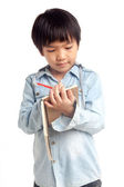 ładny chłopczyk konto z oczu okulary izolować na białym tle