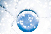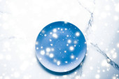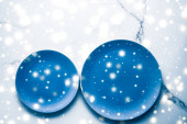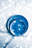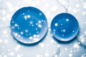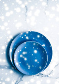 Niebieska pusta płytka na marmurowym stole w tle, naczynia d