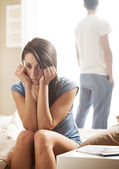 Nieszczęśliwa para z problemami związkowymi po kłótni w bedro