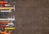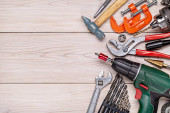 Zdjęcie " Narzędzia w warsztacie. Na stole znajdują się narzędzia do różnego rodzaju prac budowlanych i remontowych na drewnie, metalu, betonie, tworzywach sztucznych i innych materiałach." może być wykorzystywane do celów osobistych i komercyjnych zgodnie z warunkami zakupionej licencji Royalty-free. Obraz jest dostępny do pobrania w jakości wysokiej rozdzielczości do 5760x3840.