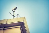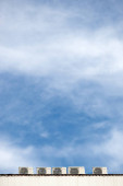 Białe zbiorniki do podgrzewania wody na dachu budynku.