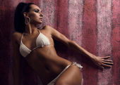 atrakcyjna młoda modelka pozowanie w czarnej sukni.