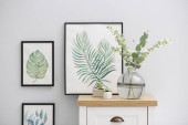 Zdjęcie "Stylowy wystrój wnętrz pokoju z kwiatowymi obrazami" może być wykorzystywane do celów osobistych i komercyjnych zgodnie z warunkami zakupionej licencji Royalty-free. Obraz jest dostępny do pobrania w jakości wysokiej rozdzielczości do 5760x3840.