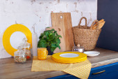 Zdjęcie "różne naczynia kuchenne na drewnianym stole. koncepcja kuchni wystroju domu. Narzędzia kuchenne, świece i drewniany wałek do toczenia pod białą ceglaną ścianą. Słoik z kolorowym makaronem. Wiosenny wystrój kuchni. Pascha" może być wykorzystywane do celów osobistych i komercyjnych zgodnie z warunkami zakupionej licencji Royalty-free. Obraz jest dostępny do pobrania w jakości wysokiej rozdzielczości do 5760x3840.
