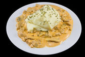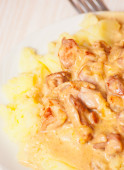 pieczarki w sosie śmietanowym z tłuczonymi ziemniakami