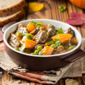 Mięso duszone z wieprzowina, wołowina, warzywa, cebula, marchew i zucchin
