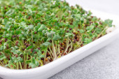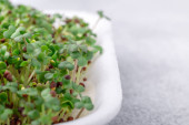 Zdjęcie "Sałatka na parapecie. Mikrowarzywa rosną. Wegańskie i zdrowe jedzenie koncepcja. Białe tło. Zbliżenie" może być wykorzystywane do celów osobistych i komercyjnych zgodnie z warunkami zakupionej licencji Royalty-free. Obraz jest dostępny do pobrania w jakości wysokiej rozdzielczości do 5760x3840.