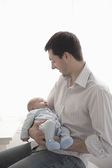 Ojciec pocałunki dwóch tygodniowych noworodków głowy