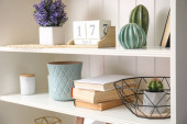 Zdjęcie "Biała półka z roślinami i różnymi dodatkami dekoracyjnymi" może być wykorzystywane do celów osobistych i komercyjnych zgodnie z warunkami zakupionej licencji Royalty-free. Obraz jest dostępny do pobrania w jakości wysokiej rozdzielczości do 5760x3840.