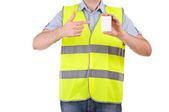 pracownik biurowy niebieski.