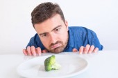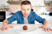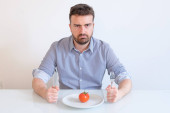 Smutny portret faceta głodny z powodu czasu spędzonego na diecie odizolowanej na Whicie