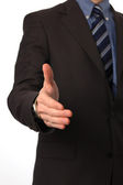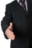 biznesmen w garniturze trzyma rękę na uścisk dłoni.