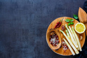 makaron spaghetti z atramentem cuttlefish (zdrowe odżywianie, czarny kolor) koncepcja menu. tło żywności. Widok z góry. przestrzeń kopiowania