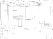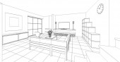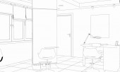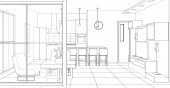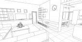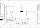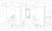 Czarno-biała wyłożona wizualizacja wnętrza sklepu, ilustracja 3D