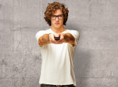 Młody przystojny mężczyzna ubrany w luźny t-shirt stojący nad odizolowanym różowym tłem, niezadowolony i sfrustrowany kamerą, wściekły i wściekły na ciebie