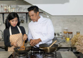 Zdjęcie "Azjatki kucharki gotują w kuchni." może być wykorzystywane do celów osobistych i komercyjnych zgodnie z warunkami zakupionej licencji Royalty-free. Obraz jest dostępny do pobrania w jakości wysokiej rozdzielczości do 5760x3840.