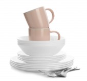 Zestaw czystych zastaw stołowych izolowanych na biało