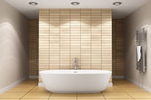 Nowoczesna łazienka ze niebieskie płytki na ścianie