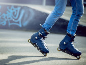 Chłopiec uczy się jeździć na łyżwach Banner, Long Format