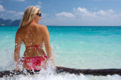 naturalne kaukaski kobieta na plaży
