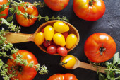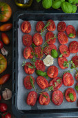Zdjęcie "Sałatka pomidorowa i bazylia. Widok góry. Pojęcie żywności dietetycznej." może być wykorzystywane do celów osobistych i komercyjnych zgodnie z warunkami zakupionej licencji Royalty-free. Obraz jest dostępny do pobrania w jakości wysokiej rozdzielczości do 5760x3840.