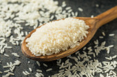 Zdjęcie "Biały ryż z drewnianą łyżką na stosie ryżu na tle starych desek. Ryż jaśminowy do gotowania." może być wykorzystywane do celów osobistych i komercyjnych zgodnie z warunkami zakupionej licencji Royalty-free. Obraz jest dostępny do pobrania w jakości wysokiej rozdzielczości do 5760x3840.