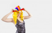 Atrakcyjne zabawy młodych kobiet gotowych na imprezy karnawałowe. Styl życia i koncepcja przyjaźni: grupa dwóch przyjaciółek. Przestrzeń kopiowania