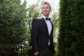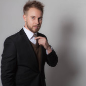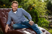 młody elegancki przystojny mężczyzna pozowanie na zewnątrz.