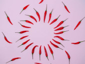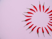 Papryka chili na różowym tle. puste miejsce na tekst. krąg papryki chili