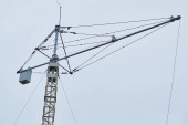 człowiek wspina się na rusztowanie po drabinie przedłużającej
