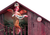 łopatka z metalowym kogutem wskazującym kierunek wiatru