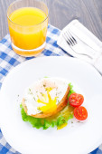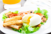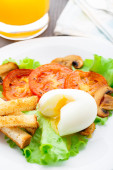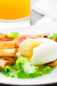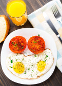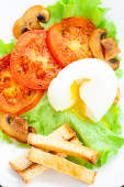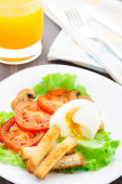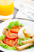 lekkie śniadanie z miękkich jajek, pomidorów i grzankami