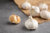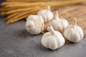 Czosnek na czarnym stole. Widok pod wysokim kątem