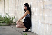 atrakcyjny asian american kobieta stylowa spódnica stojący
